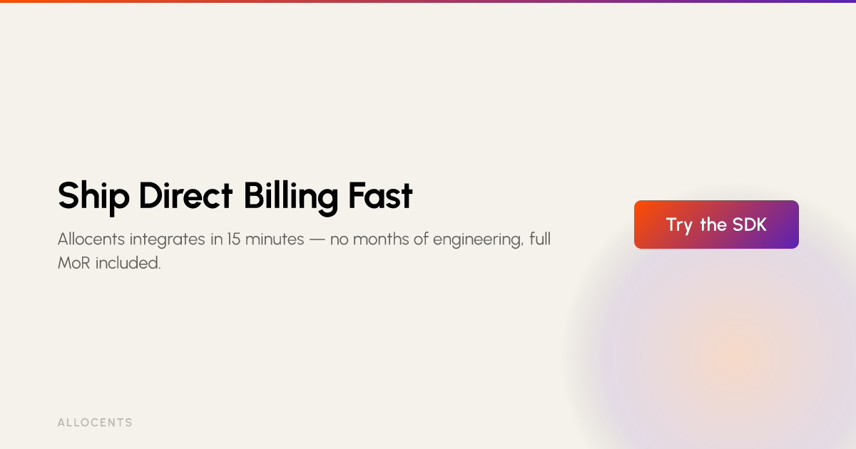If you're a US-based developer with a meaningful app business, Allocents is the most purpose-built apple in-app purchase alternative on the market right now. It's a drop-in direct billing SDK built specifically to let iOS and Android app developers bypass Apple's 30% App Store commission with a 15-minute integration.