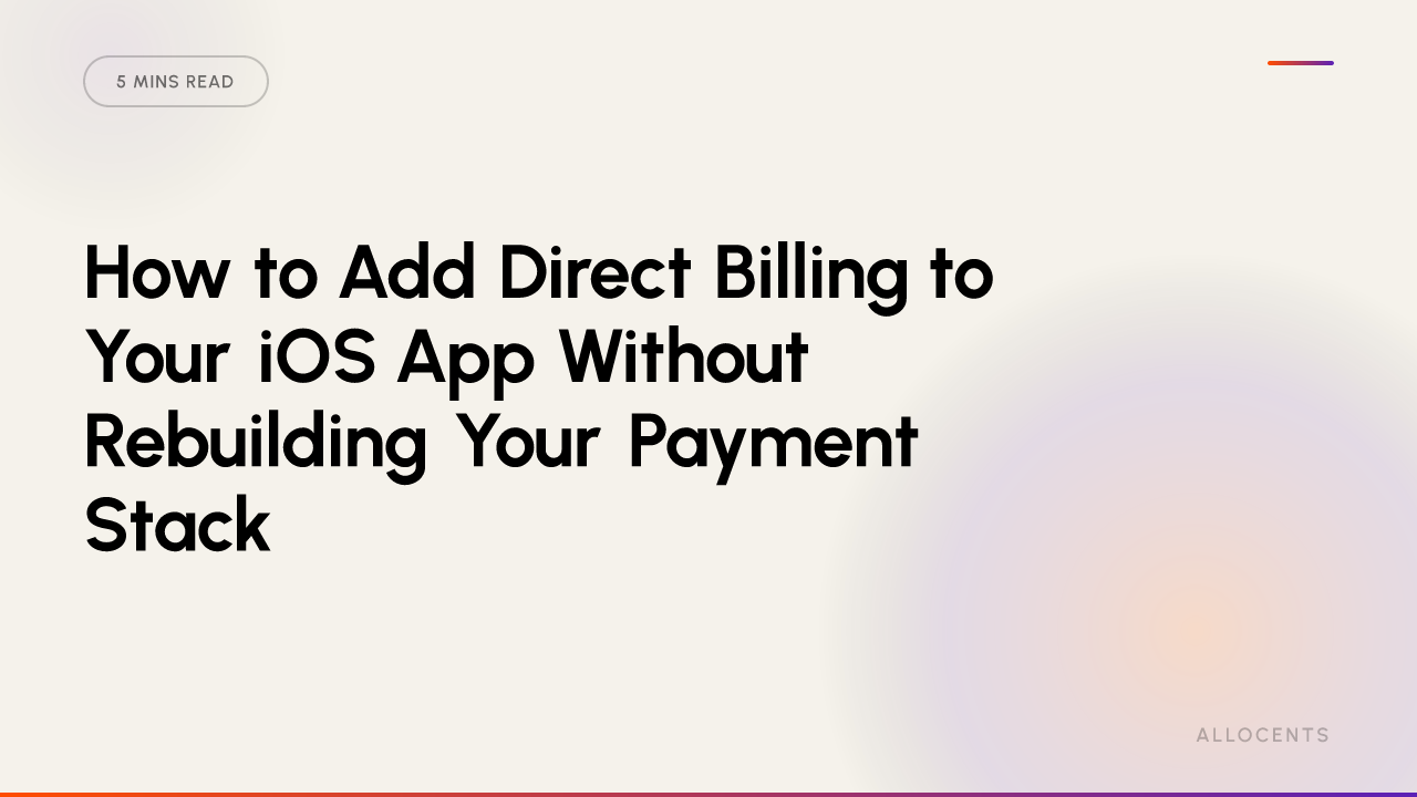 This walkthrough uses Allocents to illustrate the process. Allocents provides a single SDK that enables mobile app developers to offer direct billing alongside or instead of Apple's StoreKit, with a 15-minute integration. It's the most direct path from "interested" to "live" for mobile app payment processing on iOS.